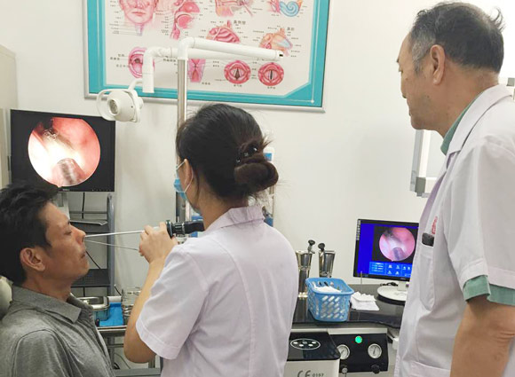西安中大医生马祥德对刘先生病情做了初步的了解和检查,随后又通过“ 狼牌内窥镜”为他做了精细的检查,结果发现刘先生不仅患有慢性鼻窦炎,并伴有鼻息肉、鼻中隔偏曲、慢性肥厚性鼻炎三大病症,下鼻甲表面有粘脓性分泌物附着,鼻咽部可见脓性分泌物,病情比较严重,医生建议采用“鼻部微创治疗术”进行治疗。